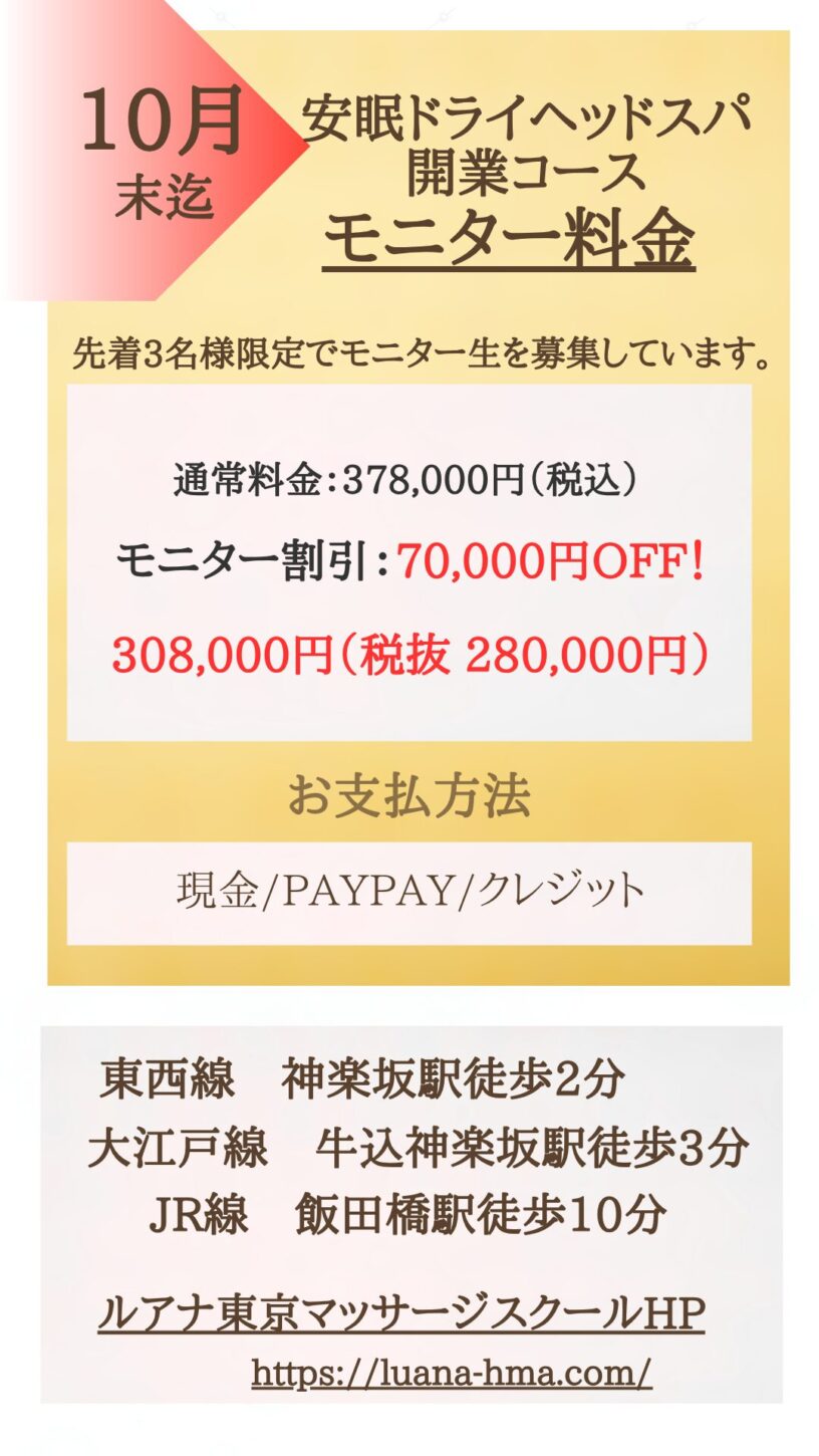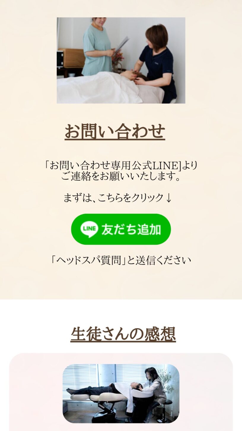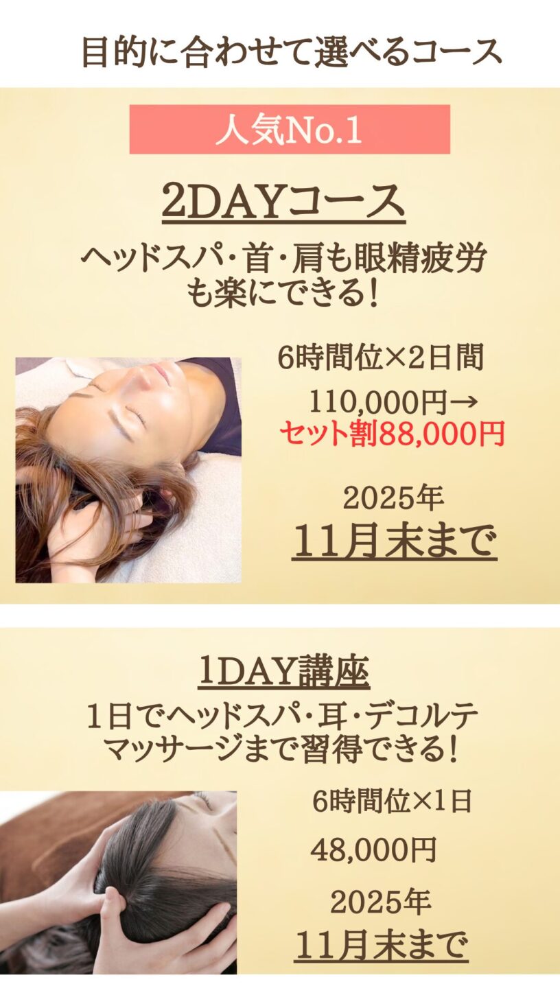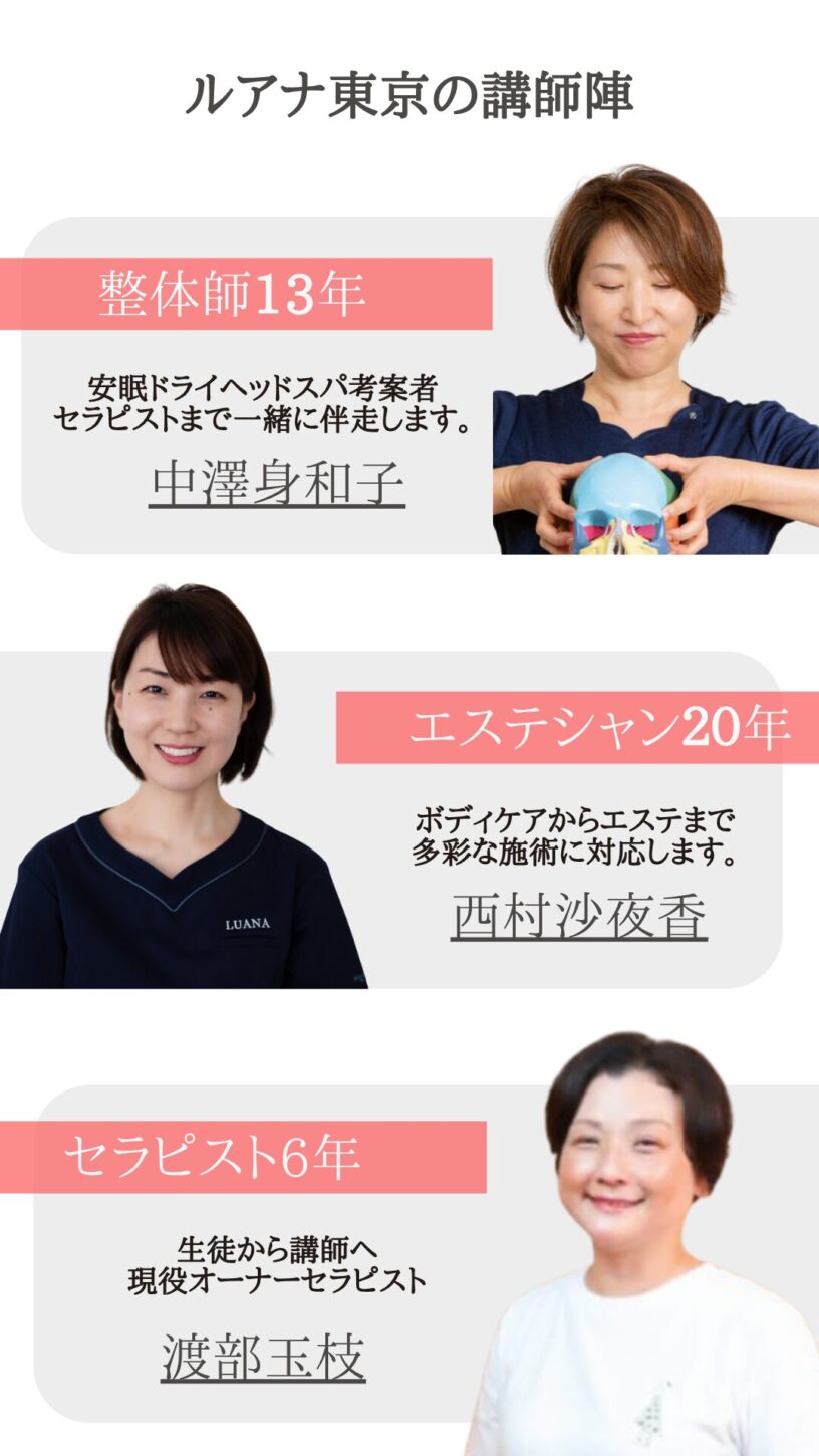 に投稿されました わたなべひろみTrustindex は、レビューの元のソースが Google であることを確認します。 講師の先生が優しく、楽しく受講する事ができました。 セラピストの仕事は手技だけでなく、先生のように癒しを与えられるようなお人柄も大切だと感じました。 私も癒しを求める人達を、優しく癒せるセラピストを目指します。 ありがとうございました。に投稿されました megumi yokoiTrustindex は、レビューの元のソースが Google であることを確認します。 参加者も少人数で、密にわかりやすく教えてくださり、お値段以上の学びのお時間でした!ありがとうございました!に投稿されました miyuTrustindex は、レビューの元のソースが Google であることを確認します。 安眠ドライヘッドスパ講座2daysを受けました。わかりやすくて丁寧な指導で先生の施術を体験しながら学べるので初めてでしたが実践にスムーズに入れました。ちゃんと出来ているか瞬時に察してくれながら手取り足取り手技をわかりやすく指導してくれました。質問もしやすく確認した所も府に落ちるよう一生懸命応えてくれてありがたかったです。先生の技術や指導力の高さはもちろんですが何よりお人柄に惹かれました。 こちらに決めて本当に良かったと思ってます。次回デコルテマッサージ講座も予約しました。 また学びに行きたいと思わせるスクールです。に投稿されました Ni CoTrustindex は、レビューの元のソースが Google であることを確認します。 安眠ドライヘッドスパ講座2days受講しました。初回の講座から認定試験までだいぶ時間が空き、自信がなかったのですが、丁寧に何度も教えていただき合格することができました! 講師の先生方はフレンドリーで、何度質問しても丁寧に教えて下さいます。 自宅で学習できるように動画も視聴でき、テキストを見返して復習できるのも安心ポイントでした。 他にも興味のある講座があるので、またお願いしたいと思います。 ありがとうございました!に投稿されました ArukkaTrustindex は、レビューの元のソースが Google であることを確認します。 安眠ヘッドマッサージ基礎コースを受講しました。短時間で習得出来るコースでしたが、内容は本格的で、施術の姿勢から圧のかけ方まで、とてもわかりやすくて丁寧に教えて頂けます。実際に先生を相手に施術の練習もするので、修正箇所も的確で自分自身取り込みやすかったです! また、復習用の動画もあるので、何度も見返して練習も出来てありがたいです。 基礎フェイシャルコースに続けての受講でしたが、他にもたくさんの講座があるようなので、また学びたい事があったら利用させて頂きます! 少人数でじっくり学びない方にはぜひオススメしたいです♪に投稿されました M MTrustindex は、レビューの元のソースが Google であることを確認します。 安眠ドライヘッドスパ基礎講座を受講しました。少人数制で、今回はマンツーマンでご指導いただけました。分からなかったり不安なところもじっくり聞いて解消できました。 部位によっても指の使い方が異なり、マッサージの奥深さを知ることができました…! 今までは感覚と独学で何となくやっていたマッサージでしたが、今日学んだ基礎のやり方を家族や身近な方々に実践して、体得したいと思います‼︎に投稿されました 志村優子Trustindex は、レビューの元のソースが Google であることを確認します。 安眠ヘッド2Day受講しました。部屋の雰囲気がとても良くリラックス。先生がゆっくり丁寧に教えてくださったので、とても楽しく進める事ができました。 動画も頂いたので後から見返しで勉強できるところが素晴らしいと思います!に投稿されました 樋田サヤカTrustindex は、レビューの元のソースが Google であることを確認します。 ドライヘッド、力加減など教えて頂かないと分からないので、しっかり丁寧に教えて頂けて良かったです!ありがとうございました!に投稿されました 時栄高橋Trustindex は、レビューの元のソースが Google であることを確認します。 安眠ドライヘッドスパ基礎講座から2day講座まで3日間で受講しました。全く初めてのことだったのでどうしても基礎講座から受講したかったのと、仕事の都合で平日で受講したい事(遠方から行くため連続で受講したかった)を申込み前に相談問い合わせしたところ、すぐに対応してくださいました。少人数制とあったのでそこもこちらのスクールに決めた理由でしたが、教えていただいた先生方はとても明るくフレンドリーでとても丁寧に教えていただき、講座の内容だけでなくこの先生方に出会えて教えていただき、こちらのスクールで学べて本当に良かったと思えるとても充実した3日間でした。 ありがとうございました!に投稿されました EMITrustindex は、レビューの元のソースが Google であることを確認します。 2daysドライヘッドスパ コースを受講しました。先生方が、みなさんとても優しく、丁寧にわかりやすく教えてくれました! そして場所も駅